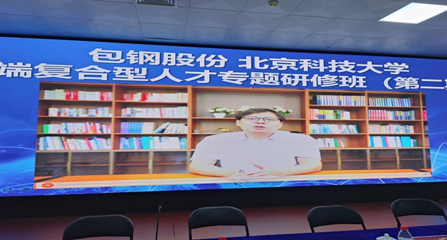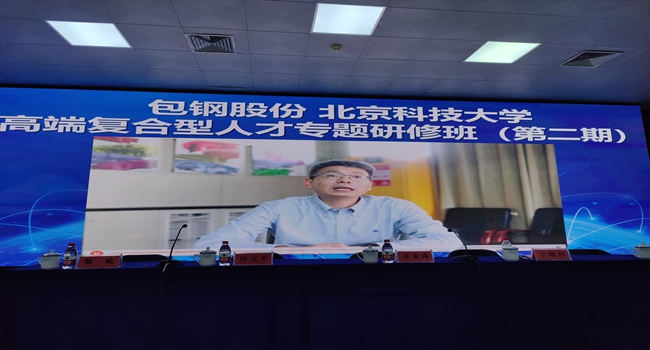 王鲁宁在致辞中说,学校紧密围绕国家发展战略,聚焦钢铁工业技术变革和产业升级,积极构建面向行业的服务型继续教育体系,实施“百企万人” 钢铁企业人才培养计划,努力构筑校企之间知识、人才和创新的“立交桥”。他指出,北科大的学科优势、科研方向、攻关课题等与包钢股份公司在工艺优化、产品研发、节能环保等领域高度契合,具有广阔的合作空间。他提出,要以习近平总书记在给北科大老教授们回信中对钢铁工业人才培养工作的重要指示为行动指南,以此次研修班为契机,深化合作,推动“产学研用”一体化发展,促进包钢股份公司高质量发展、绿色发展,实现学校与企业共赢发展。