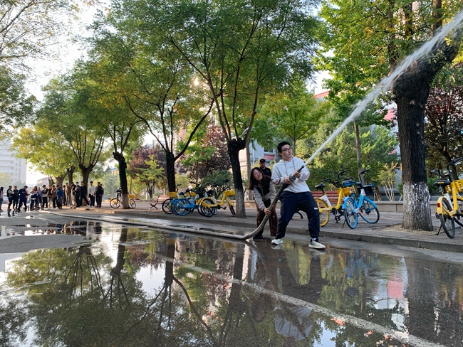 随后,师生员工使用灭火器、消火栓进行了“灭真火、出真水”两项技能的实操实训,大家有序、高效地针对火源采取了扑灭行动。本次实操实训达到了熟练掌握消防器材的使用方法,实现"见火不慌、抬手就灭"的预期效果。