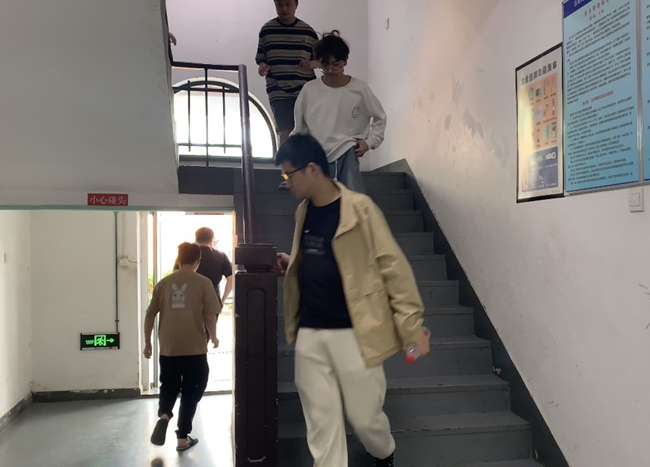 当天中午12点30分,随着10号楼学生公寓的防震避险预警响起,宿舍内的学生迅速做出规定动作等候指令。在工作人员的指挥下,同学们按照既定的疏散路线井然有序地撤离出宿舍楼,并在篮球场内集合到位。本次防震应急疏散演练,以亲身体验的方式使同学们学习了在地震突发时如何进行自救,增强了同学们紧急情况下的应变能力与心理素质。同时,也进一步检验了校区各部门在紧急情况下的协调运作能力。