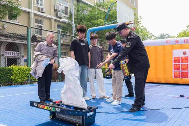 在消防设备模拟体验区,校区保卫科老师与微型消防站的义务消防员给师生们详细讲解了地震发生时的逃生要点和技巧,灭火器及消火栓的使用方法和注意事项,师生们听完讲解后纷纷尝试各类消防设备,在轻松愉快的氛围中掌握了正确使用方法。