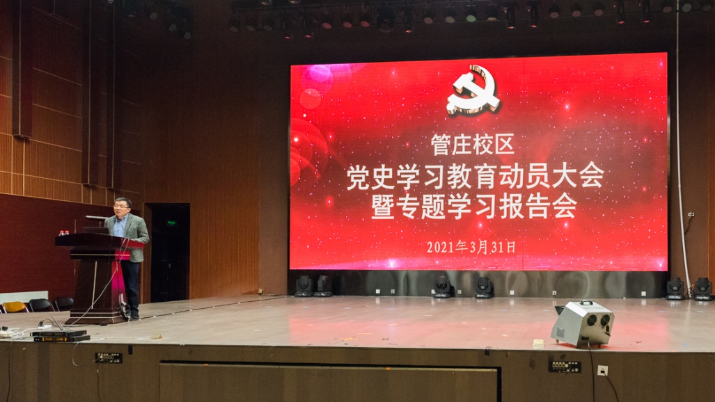 3月31日下午,91传媒 召开党史学习教育动员大会暨专题学习报告会。学校党史学习教育指导组二组组长孙铁、校区全体教职工和入驻校区研究生党员参加会议。会议由校区党委书记、校区党史学习教育领导小组组长吕朝伟主持。