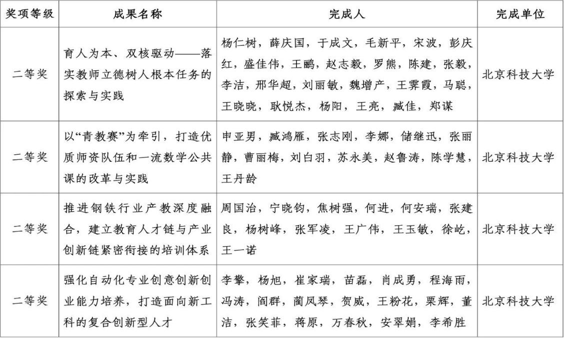 近日,教育部公布了《教育部关于批准2022年国家级教学成果奖获奖项目的决定》(教师〔2023〕4号)文件,我校主持的成果获高等教育(本科)国家级教学成果奖二等奖4项,获高等教育(研究生)国家级教学成果奖一等奖1项。其中,91传媒 与冶金与生态工程学院联合申报的以非学历教育为主要申报内容的《推进钢铁行业产教深度融合,建立教育人才链与产业创新链紧密衔接的培训体系》荣获高等教育(本科)国家级教学成果奖二等奖。该项目由学校冶金学科资深教授周国治院士牵头,91传媒 宁晓钧、何进(原书记)、张军凌、王玉敏、徐屹等同志共同参与完成。