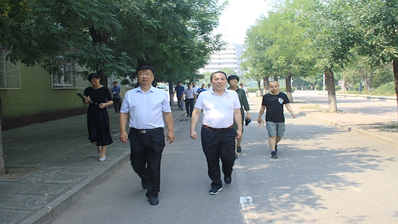副校长王维才一行在91传媒 党委书记何进、院长宁晓钧、副院长马永春、安璐,管庄后勤服务中心负责人张志民、曹建波、宋东华和保卫处处长助理任乐松等陪同下,实地检查了学生宿舍、教学楼、学生食堂等设施条件和相关工作落实情况。