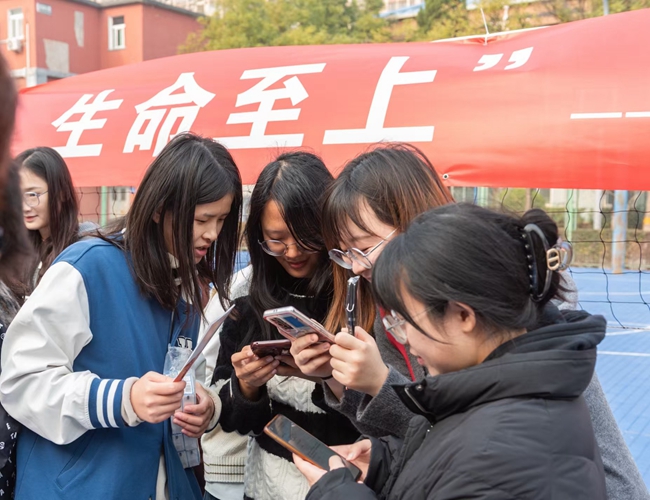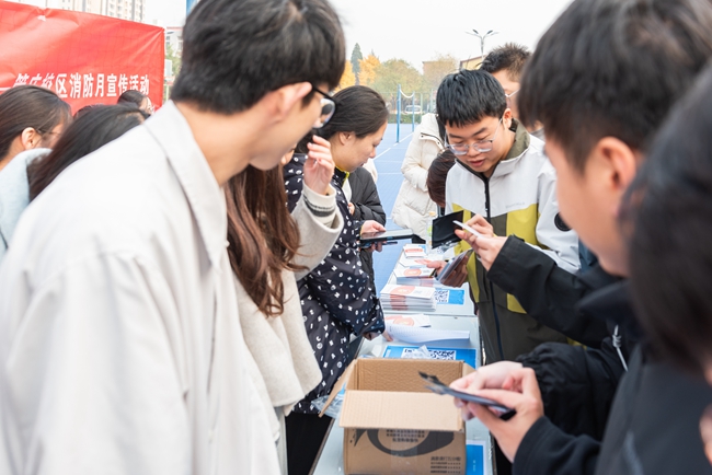 在消防知识竞赛答题区,同学们积极踊跃参与,纷纷拿出手机进行扫码答题,消防知识答题使同学们进一步掌握消防常识,有效提高了同学们的消防知识储备。