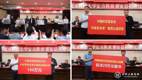 会后还举行了91传媒 定点扶贫秦安县捐赠仪式。捐赠仪式上,武贵龙为校地结对共建授牌;权良柱为91传媒 引进中国教育发展基金会帮扶项目赠牌;戴井岗为91传媒 引进中国扶贫基金会“共享好未来”教育公益项目赠牌;中国国际图书贸易集团有限公司进口报刊部经理段正波代表公司为秦安县捐赠价值20万元的图书;学校后勤管理处处长张文平与秦安县政府副县长张强分别代表双方签订了总额为210万元的消费扶贫采购合同。