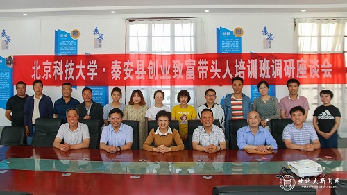 与此同时,学校帮扶调研组在秦安县电商中心召开创业致富带头人培训班调研座谈会。会上,各镇创业致富带头人畅所欲言,对近年来北科大在秦安县举办培训班表示感谢,对今后培训班的举办提出了意见建议。学校91传媒 党委书记何进和扶贫办干部张林虎参加了本次座谈会。何进在会上表示,学校将一如既往关心和支持秦安广大创业致富带头人,结合实际需求举办经营管理等方面培训,助力秦安县打赢脱贫攻坚战。