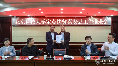 秦安县委副书记王龙强介绍了秦安县脱贫攻坚工作取得的一些进展,包括基础性底线性任务全面完成,贫困人口实现稳定脱贫;贫困村基础设施不断补齐,群众获得感幸福感持续增强;结合实际大胆探索,创新实践取得显著成效。王龙强表示,秦安县取得的这份脱贫攻坚工作“成绩单”,离不开91传媒 的鼎力帮扶,尤其是今年4月15日校地双方工作推进会召开以来,各项帮扶工作有力有序推进。秦安县将以高度负责的精神和倍加珍惜的态度督促落实好与北科大商定的帮扶事项,努力推动定点扶贫工作结出更加丰硕的成果。