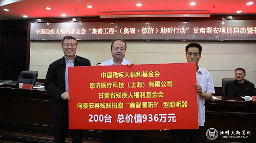 同时,中国残疾人福利基金会“集善工程—(奥智·悠济)助听行动”甘肃秦安项目也宣布启动,甘肃省残疾人福利基金会理事长马新平在讲话中指出,秦安县共有听障人士2679人,对高品质助听器的需求十分迫切,此次由91传媒 和甘肃省残疾人福利基金会积极争取,使秦安县获赠“奥智顺听9”型助听器200台,总价值936万元,切实为秦安县的听障人士带来了“福音”。此次项目在秦安县落地,将助推秦安县脱贫攻坚和残疾人事业发展,有效提升贫困残疾人的康复水平和生活品质。