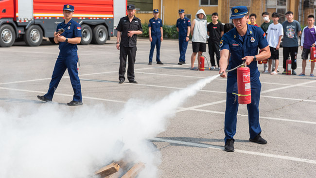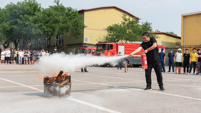 消防指战员对灭火器、消火栓使用进行讲解和示范操作后,在场师生先后进行了“灭真火”和“出真水”操作。通过此次实操实训,确保“小火会用灭火器,大火会用消火栓”,人人都能成为“见火不慌、抬手就灭”的“准消防员”。